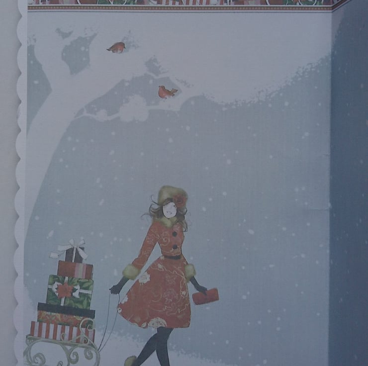 Christmas Card Elegant Lady Christmas Wishes and Sleigh 3D Luxury Handmade Card