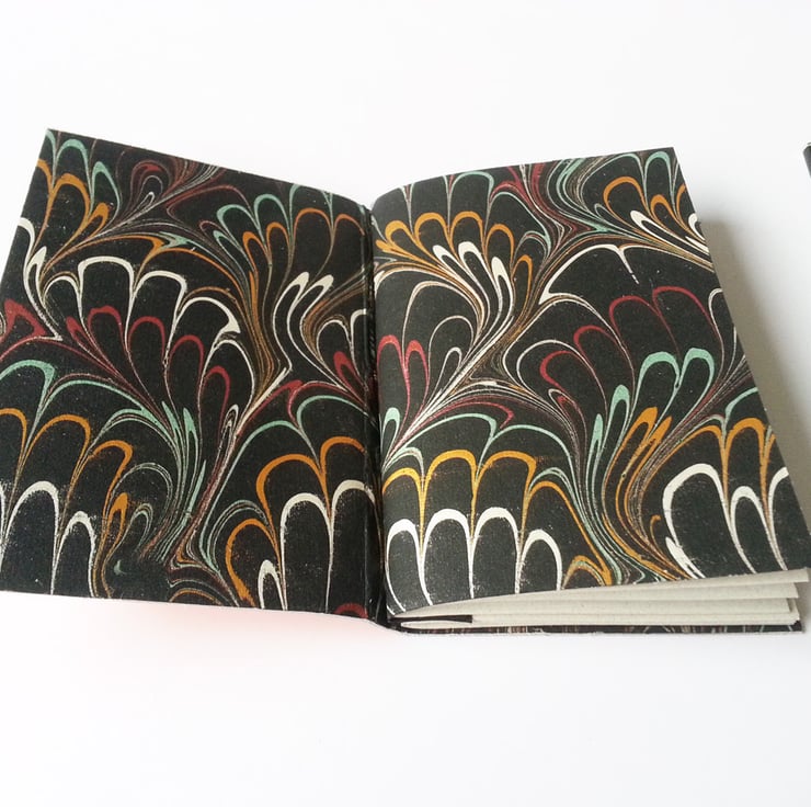 - There are end-sheets & cover linings of Indian cotton paper in black, with metallic coloured hand marbling.