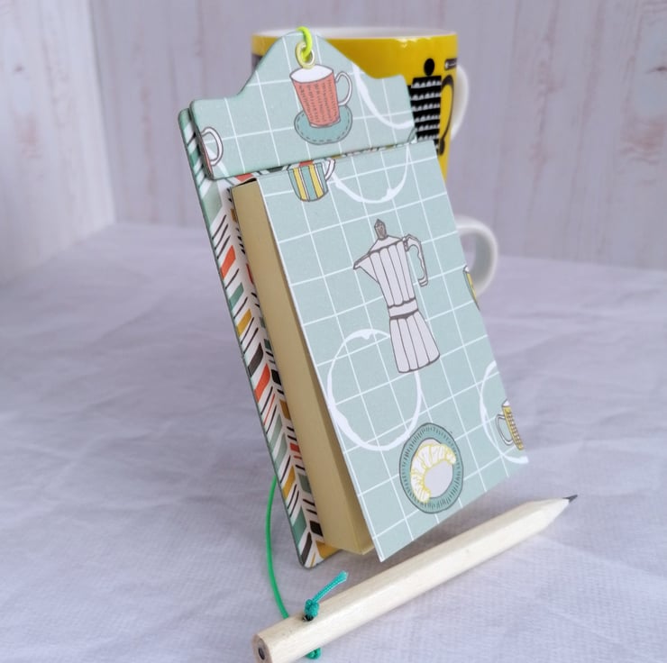 This die cut kitchen themed magnetic memo pad is perfect for keeping on the fridge door for jotting down notes and making shopping lists.