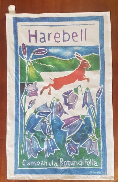 The Harebell tea towel is made from a 100% cotton and is generous in size, 49cm x 75cm, with a hanging tag. Made in the UK and machine washable at 30 degrees.