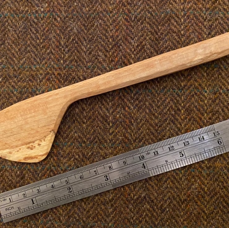 Hand made using traditional tools including axe, knife and drawknife. The finished item shows the lovely smooth facets from these sharp tools and no sanding is used. The stunning wood grain is enhanced and sealed using food grade organic linseed oil. My elf hat makers logo is also burned into the handle. The sycamore log used for making the spreader, was locally sourced from an arborist.