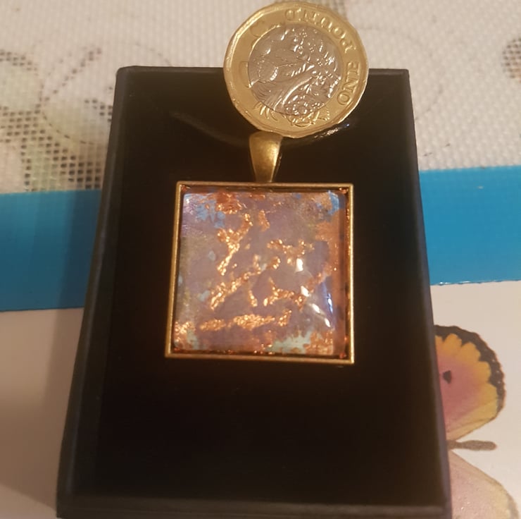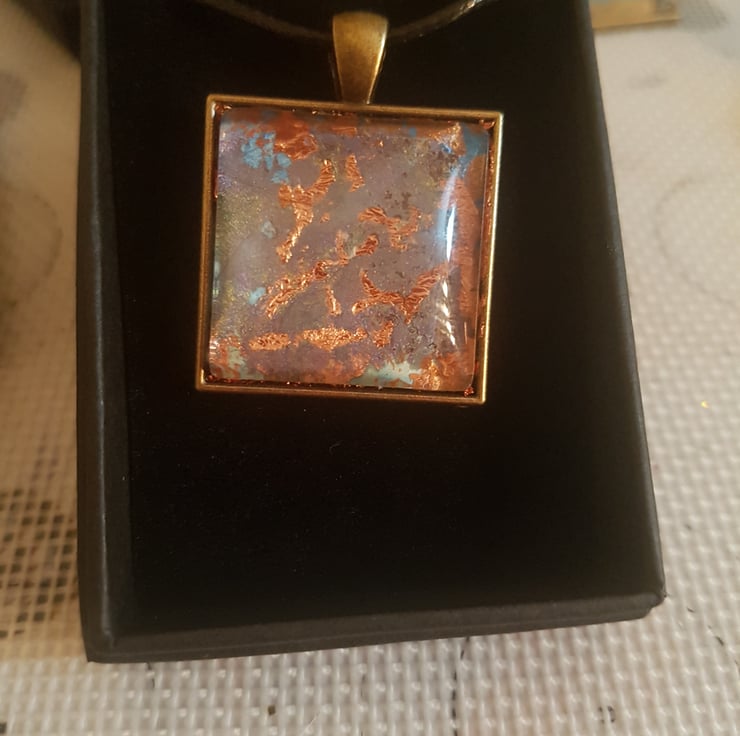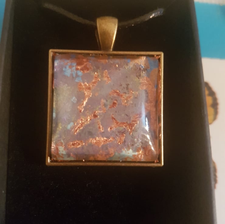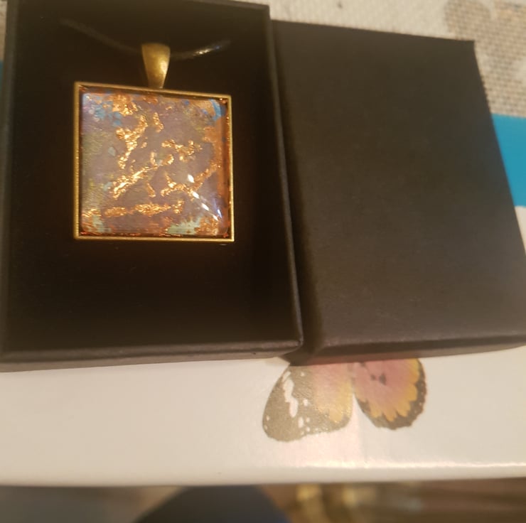 2cm by 2cm on a black cord necklace and comes in a lovely presentation box a unique piece of art that will be admired whenever it's worn.