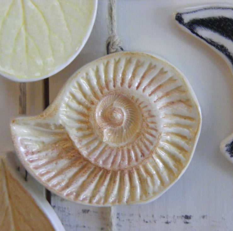 This piece was inspired by the never ending spiral of the ammonite and the relationship between the Hare, Fox and Badger in nature. Walking around our village I have seen Hares and luckily a couple of times a Fox, alas no Badgers as yet! I felt drawn to creating a piece of art that incorporated leaves, an ammonite and the hare, fox and badger to connect the land, nature and animals around us together. The spiral of the ammonite ties in with the spiral on the hare reminding us of the never ending circle of life in nature.