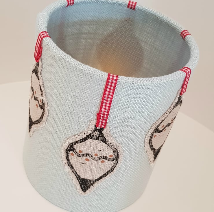 Hand printed bauble lantern with LED candle (Pale blue with red & white ribbon)