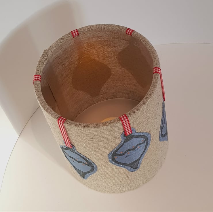 Hand printed bauble lantern with LED candle (Hessian with red & white ribbon)