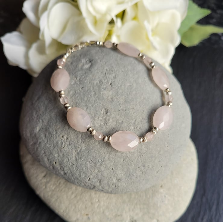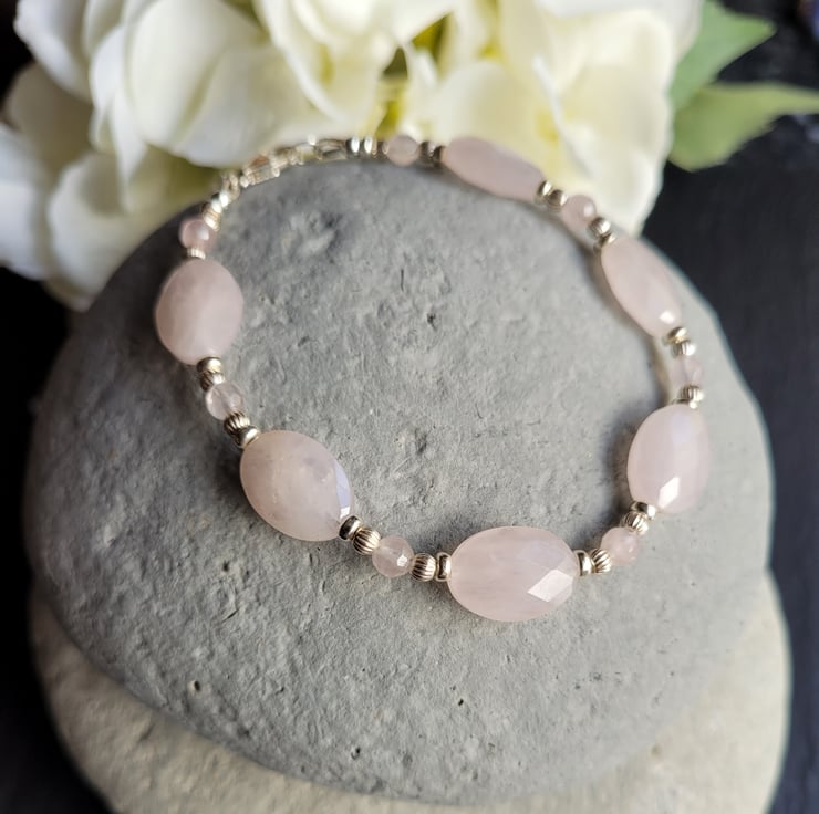 Rose Quartz and Sterling Silver Bracelet