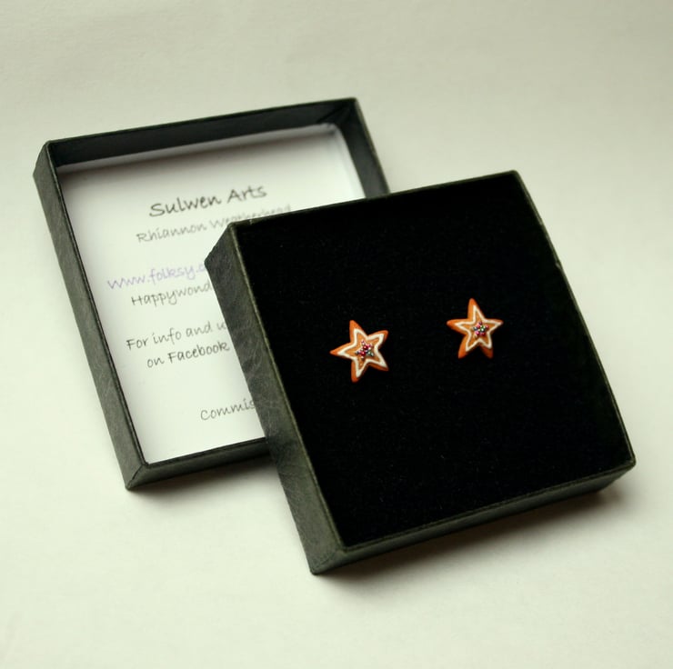 These handmade polymer clay stud earrings have been carefully textured, coloured and iced to give a realistic touch of festivity to your ears!