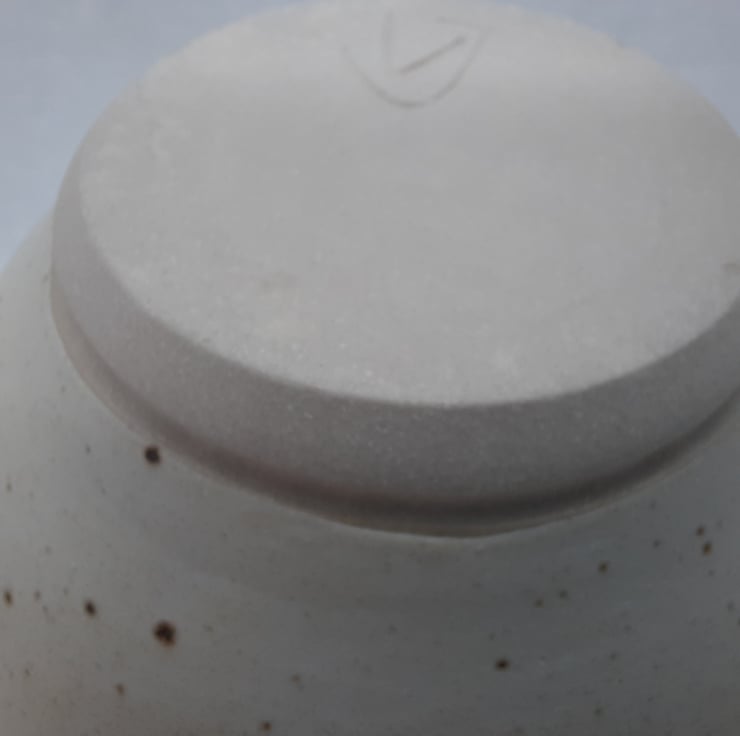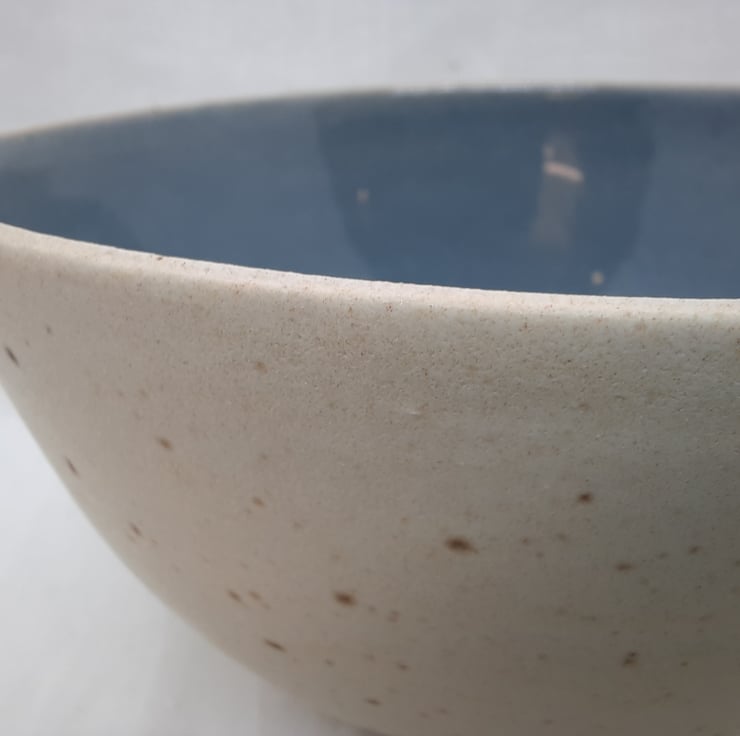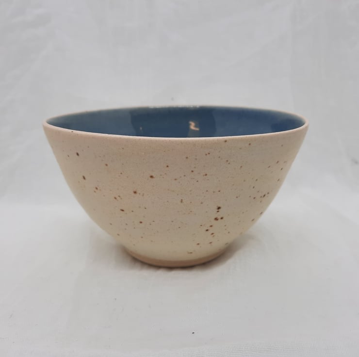A large cereal, soup, every day bowl. Blue gloss inside with a matt cream speckle on the outside. Robust enough to be used every day.