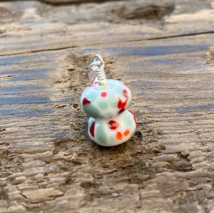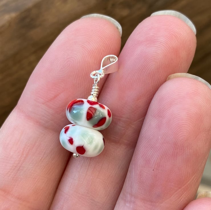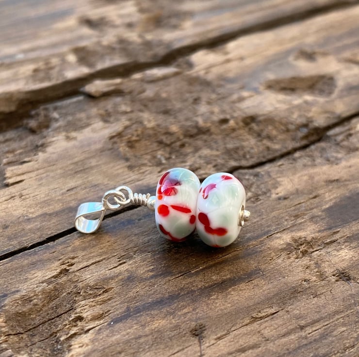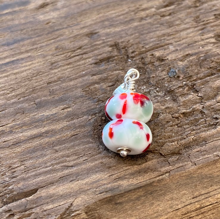 Mini lampwork pendant on sterling silver necklace. White red & grey.