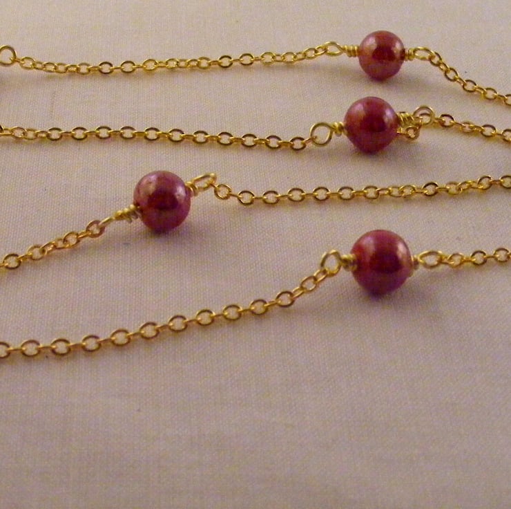Never miss place your spectacles or sunglasses again with this lovely red ceramic spectacle chain. Spectacle chain is handmade with, 8 mm red shiny ceramic rounds, gold plated oval link chain, wire and rubber spectacle findings.