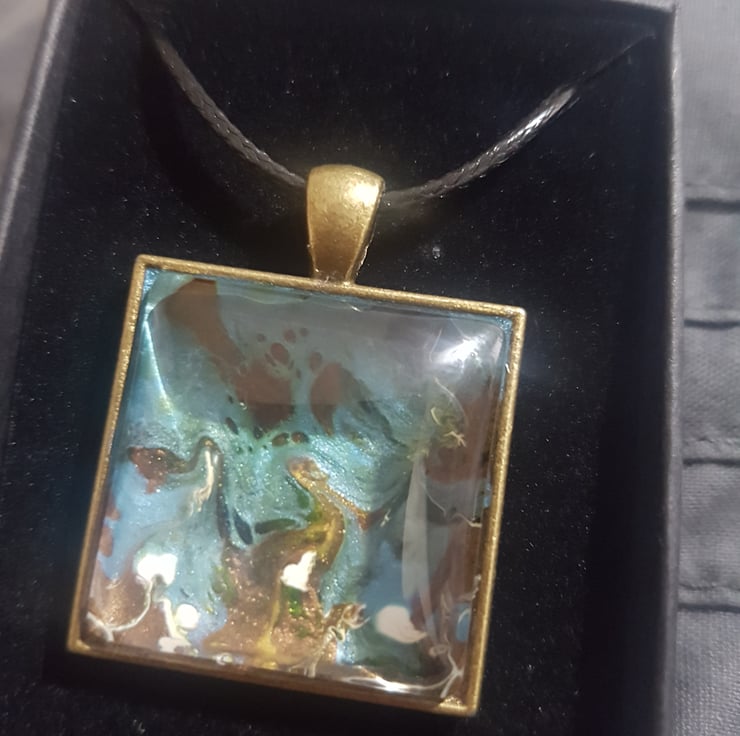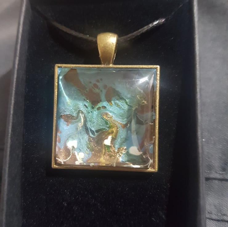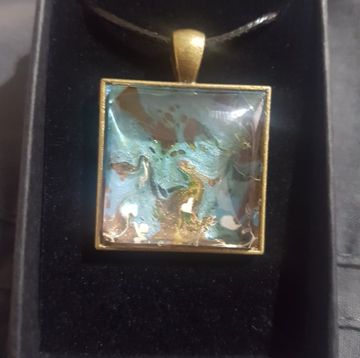 Blue dark, gold and white abstract style pendant