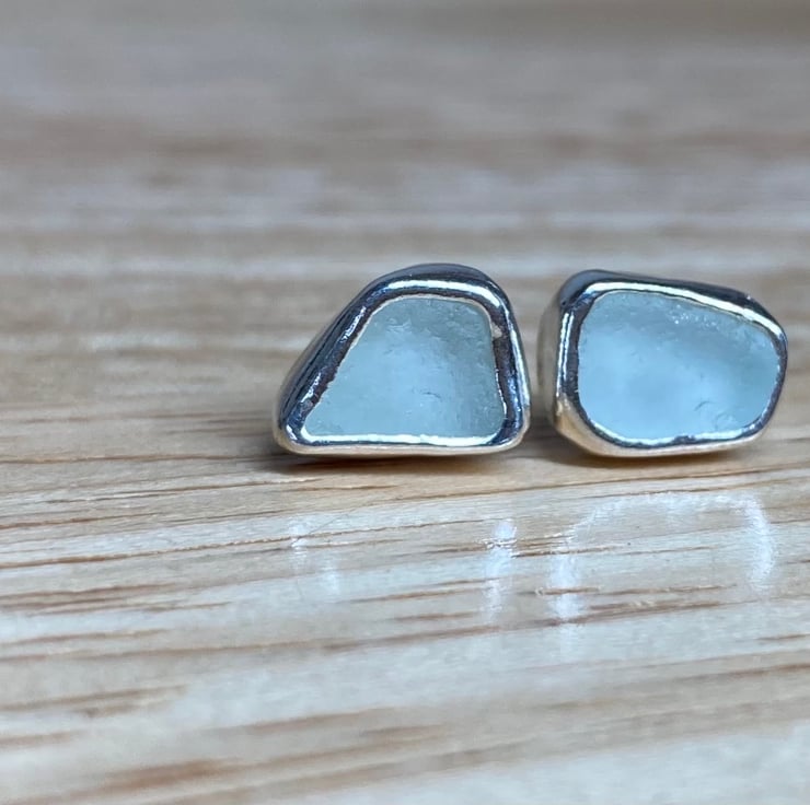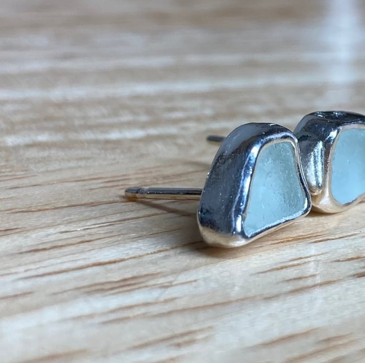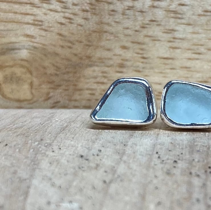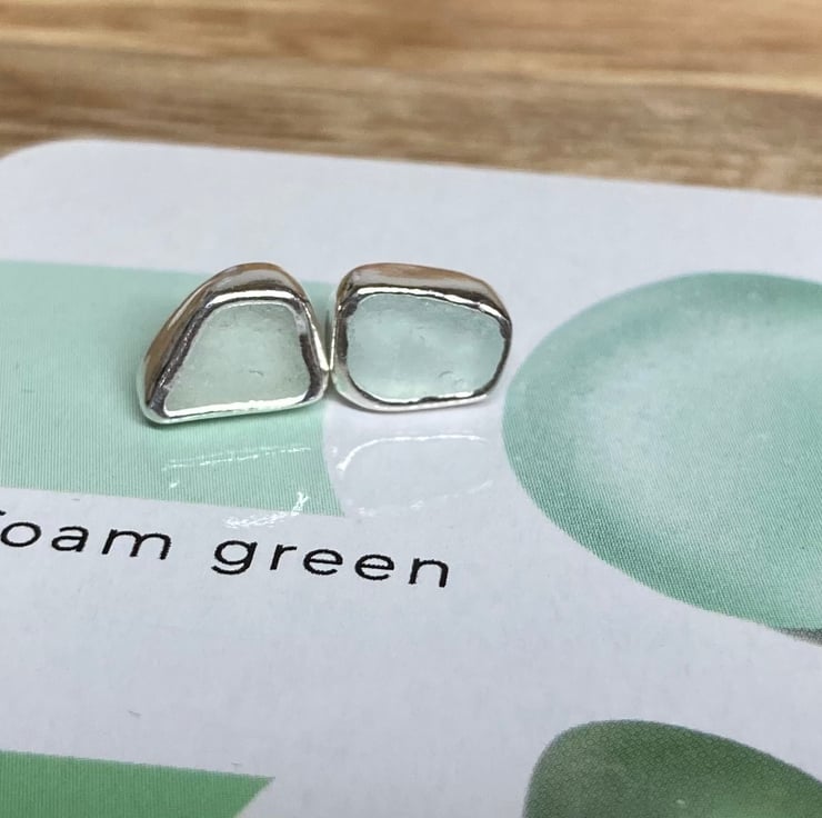 Stunning Seafoam-green welsh sea glass and silver medium sized stud earrings.