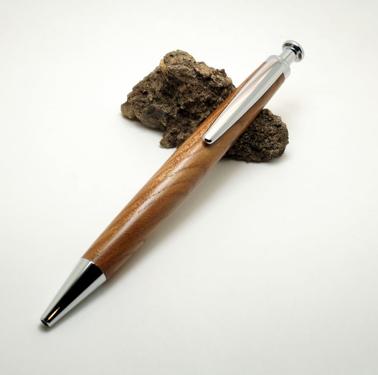 This pen was handturned by me in my workshop in suffolk, the metal parts are chrome finish, Included in the price is a black card presentation box & Protective velvet sleeve
