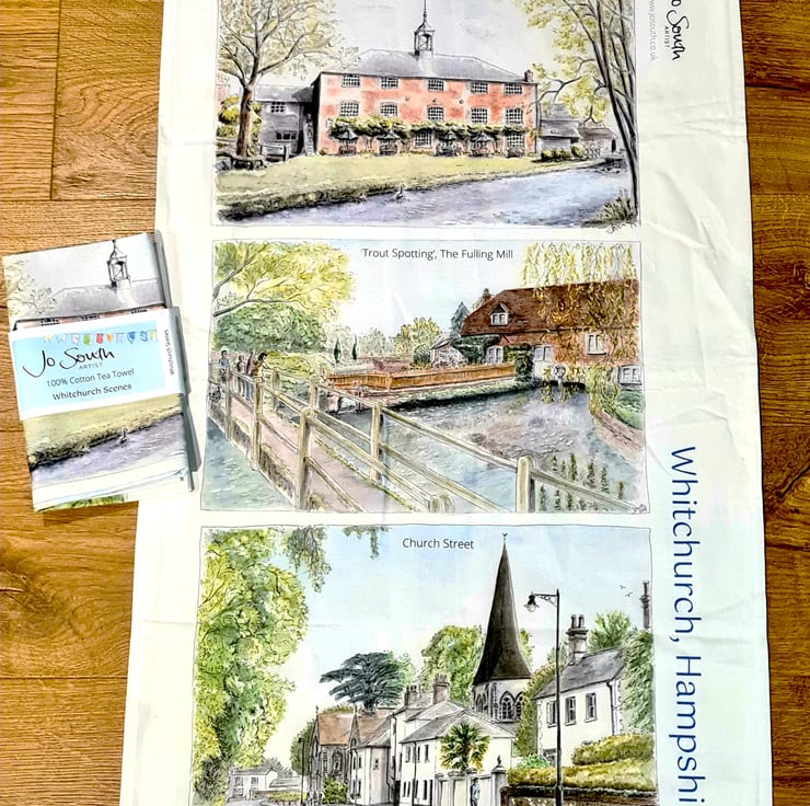 Tea towel including 3 of my Whitchurch watercolour paintings: