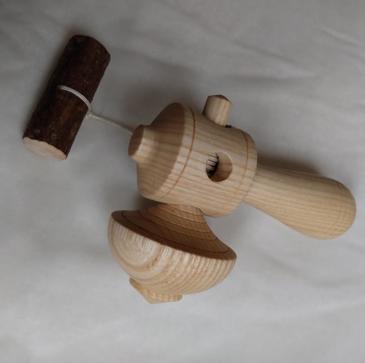 I make lots of these fantastic battery free toys so although I've listed 3 available they will all be similar to this one but with slight variations - the grain will differ in undulations, I make subtle differences in the decoration, just a little and they all suit the wood, the toy and my whimsical mood on the day I turned them, and this one has five decorative circles turned into the wood with one of my razor sharp skews...