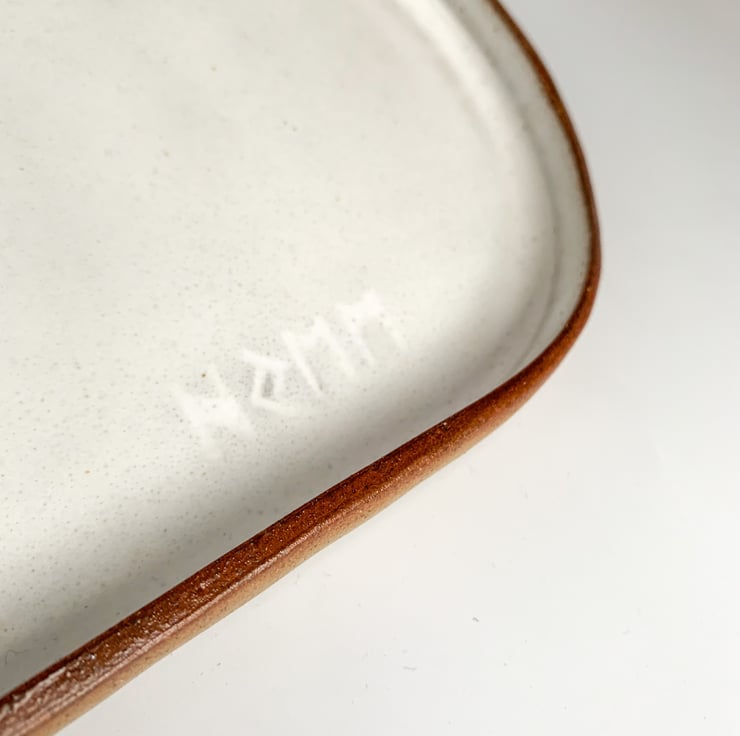 Oval plate in white glaze and natural gray, subtly stamped with the runes HYEM - both Geordie and Danish for “Home”. Ideal for snacking or making your desserts look posh.