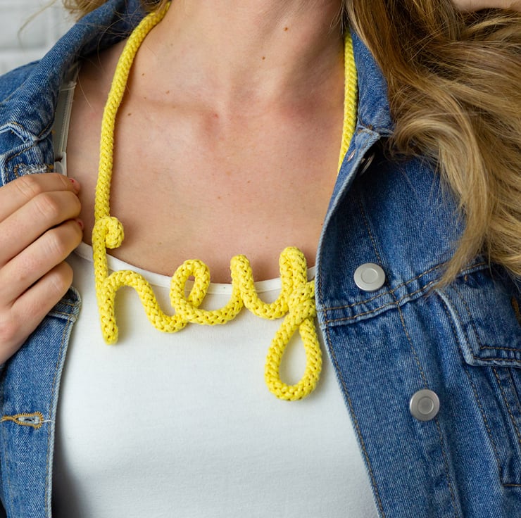 A combination of statement and minimalist styles. Instantly dress up any outfit by adding this striking piece of statement jewelry. Easy to wear and combine with any casual or elegant outfit. Comfortable necklace made from ecological and soft cotton. It is made from 100% cotton yarn and does not contain any harmful substances that pose a risk to the environment or human health.