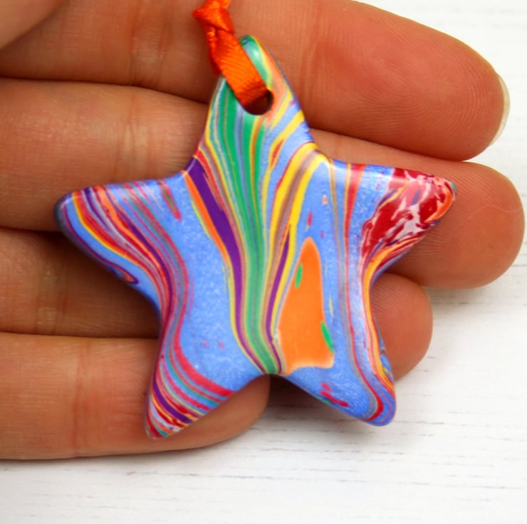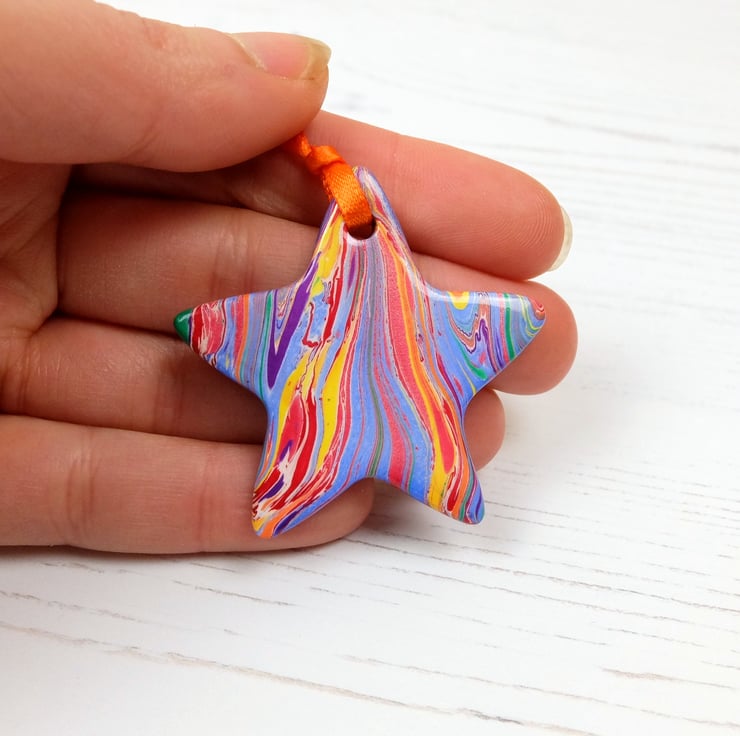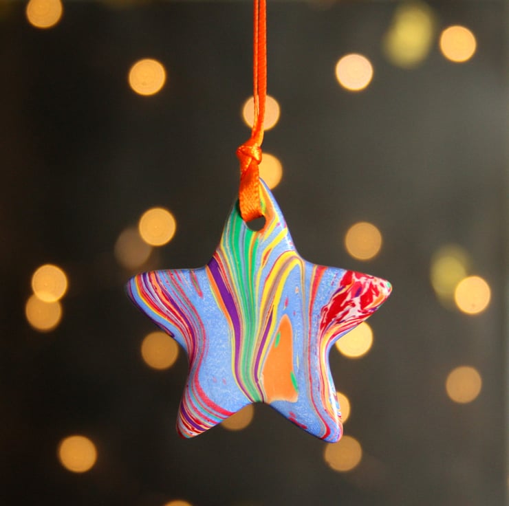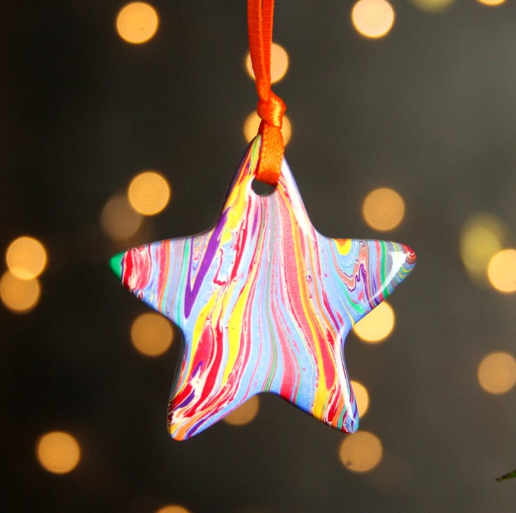 This is a fun and colourful little marbled ceramic rainbow star decoration - the only rainbow one available!