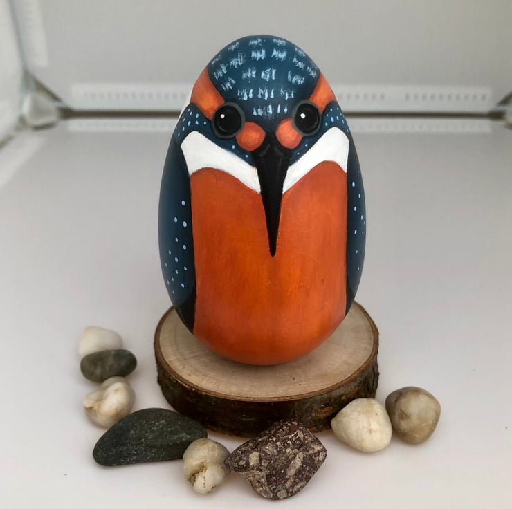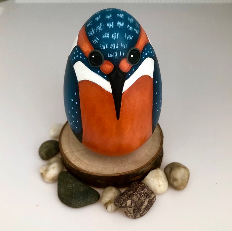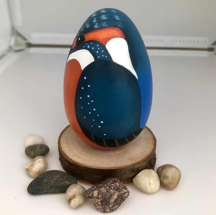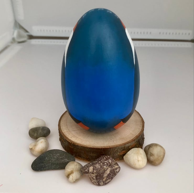 A super colourful kingfisher hand painted on to a solid hard wood egg.