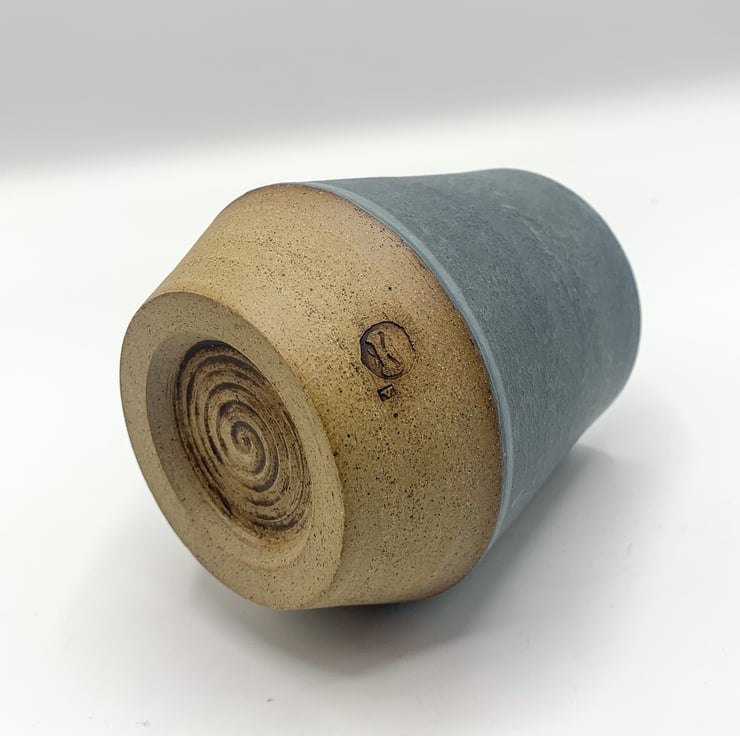Matt charcoal glaze on brown clay tumbler. A more tactile alternative to a traditional glassware.