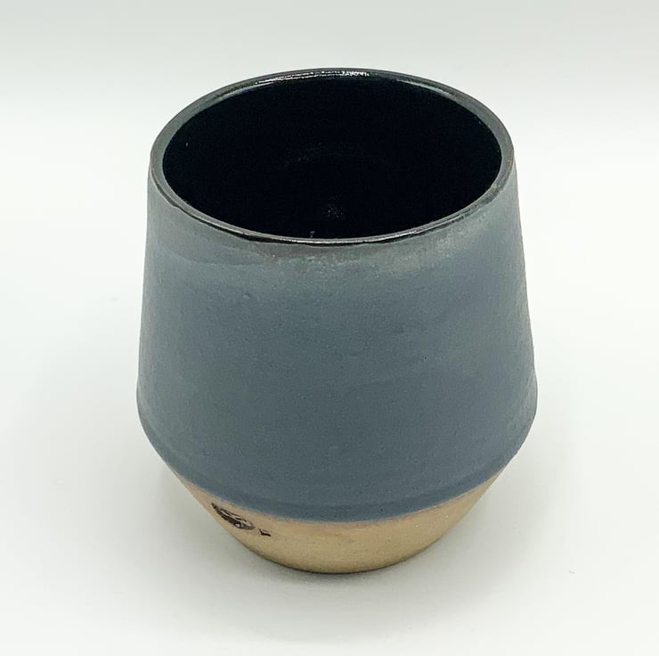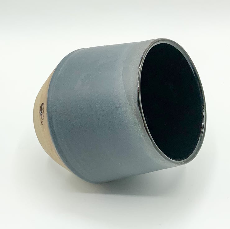 Matt charcoal exterior glaze with interior black gloss glaze on brown clay tumbler. A more tactile alternative to a traditional glassware.