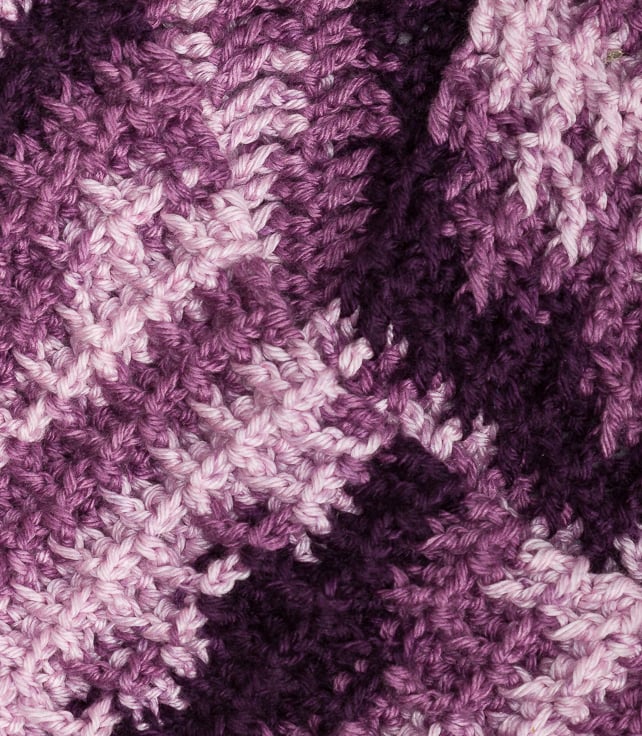 This yarn is variegated and so the colour is self striping from a light to dark purple.