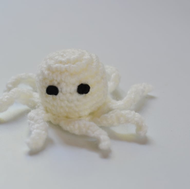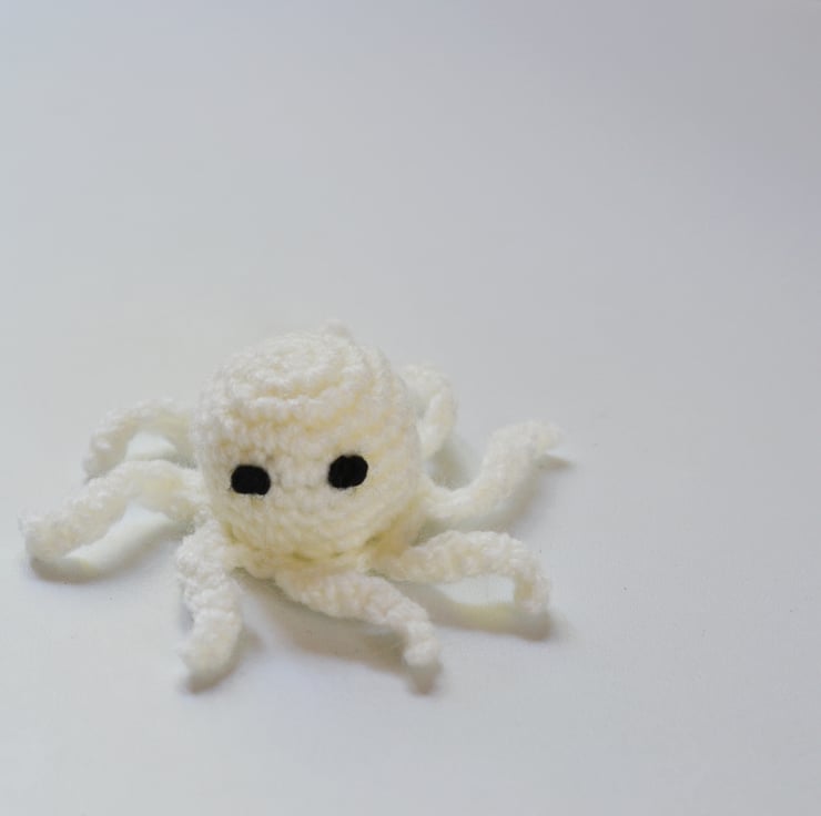 Hand crochet octopus with 2 options for you to choose how it is finished.
