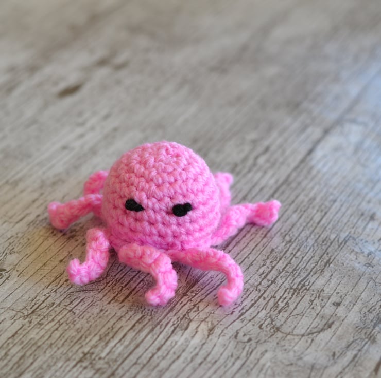 Hand crochet octopus with 2 options for you to choose how it is finished.