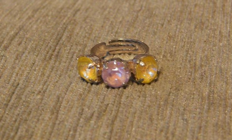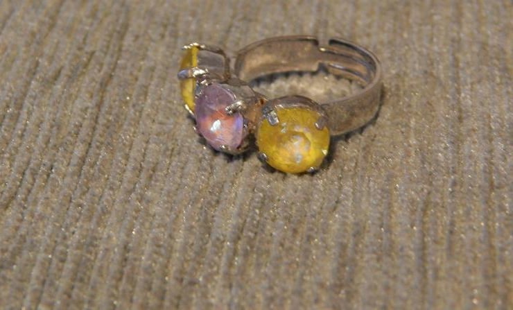 Adjustable ring base made with 8mm Sunshine Delite and 8mm Lavender Delite Swarovski chatons in a silver plated ring base.