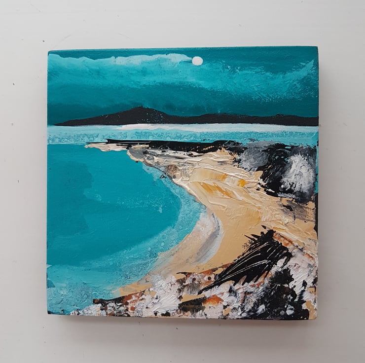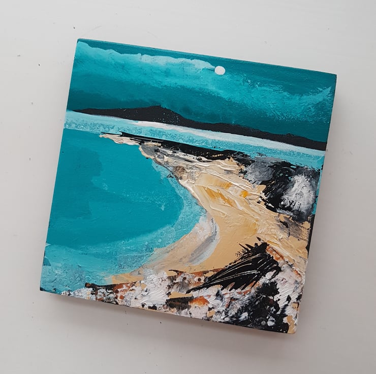 Each original painting is 10 cm x 10 cm on wood signed at the back and has a hook for hanging on the wall.All my originals are painted with a palette knife inspired by the coastal areas and Islands around the UK
