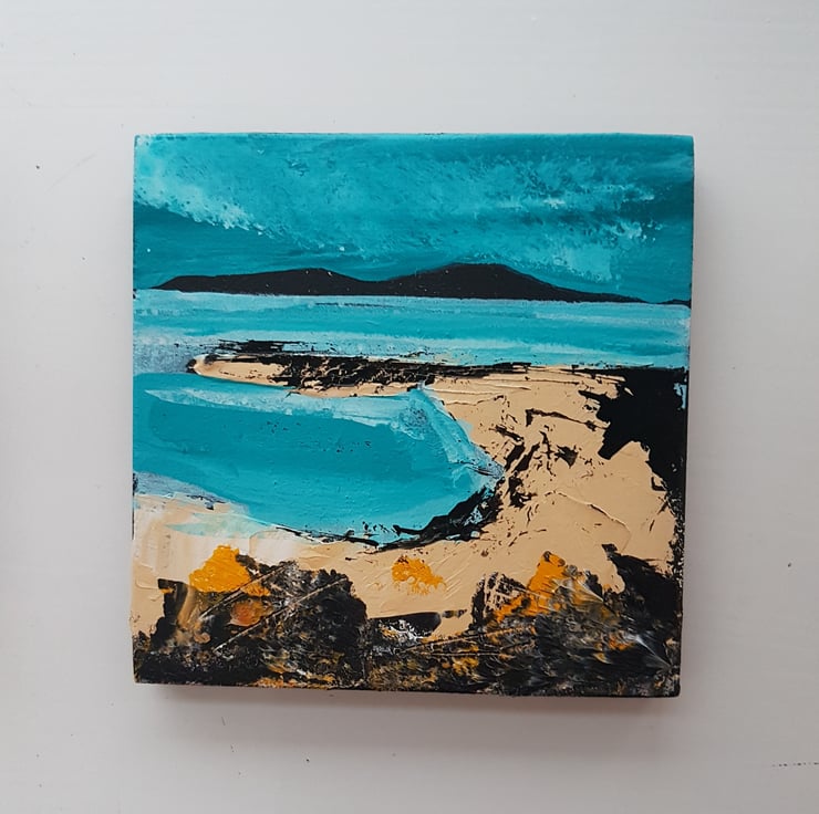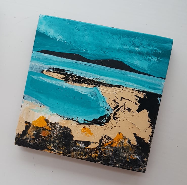 Each original painting is 10 cm x 10 cm on wood signed at the back and has a hook for hanging on the wall.All my originals are painted with a palette knife inspired by the coastal areas and Islands around the UK