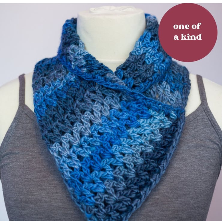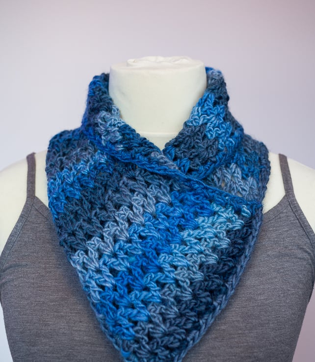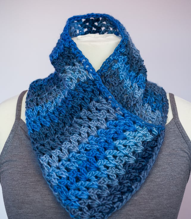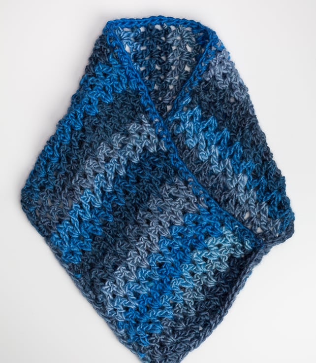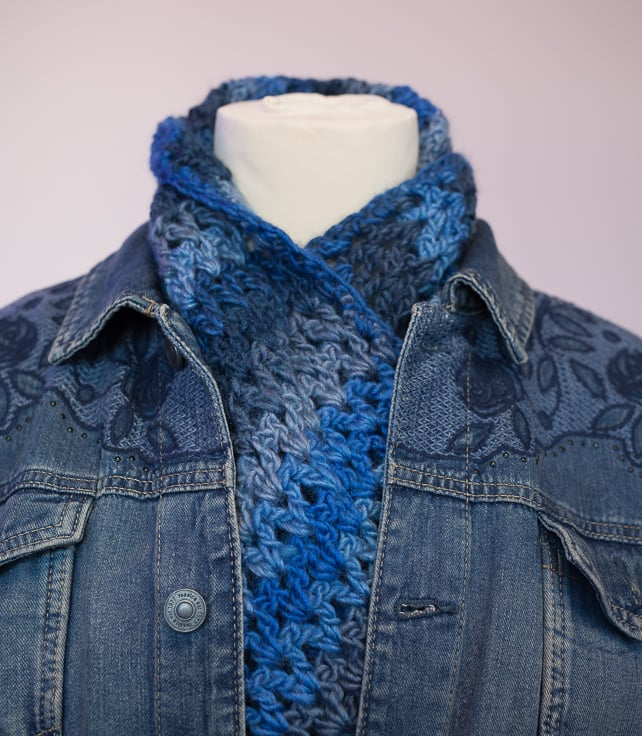 I have crocheted this cowl using King Cole Riot Chunky in denim colour.