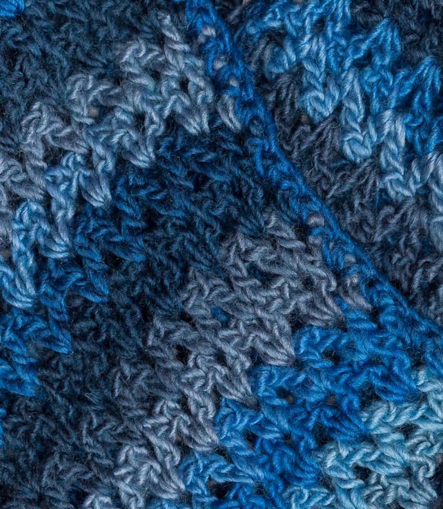 This is a nice fluffy yarn being a mix of wool and acrylic. The colour variegation is really pretty.