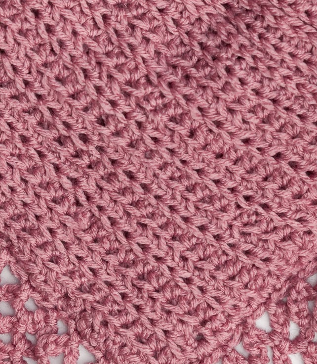 When you have a single colour yarn, it really looks great if you add the fringing/decorative edging.