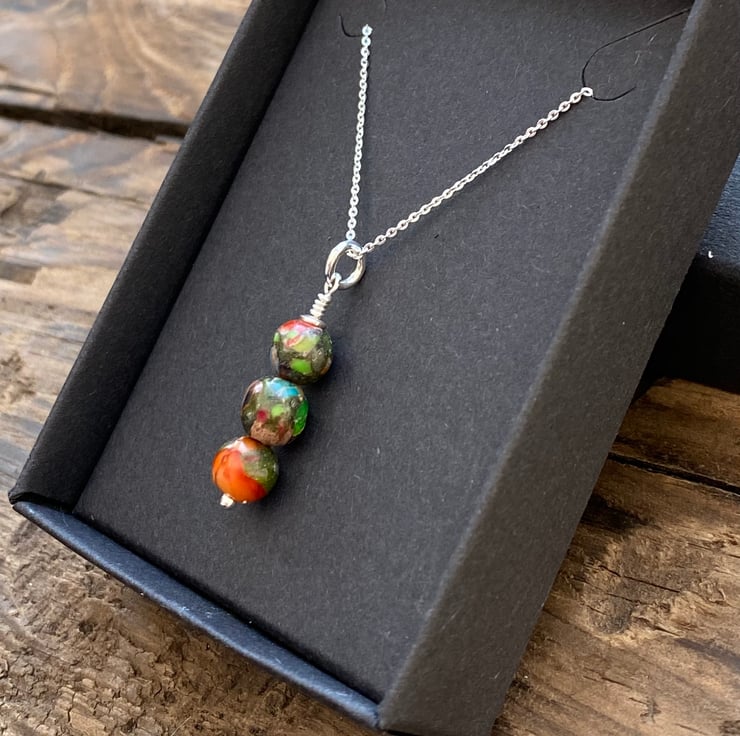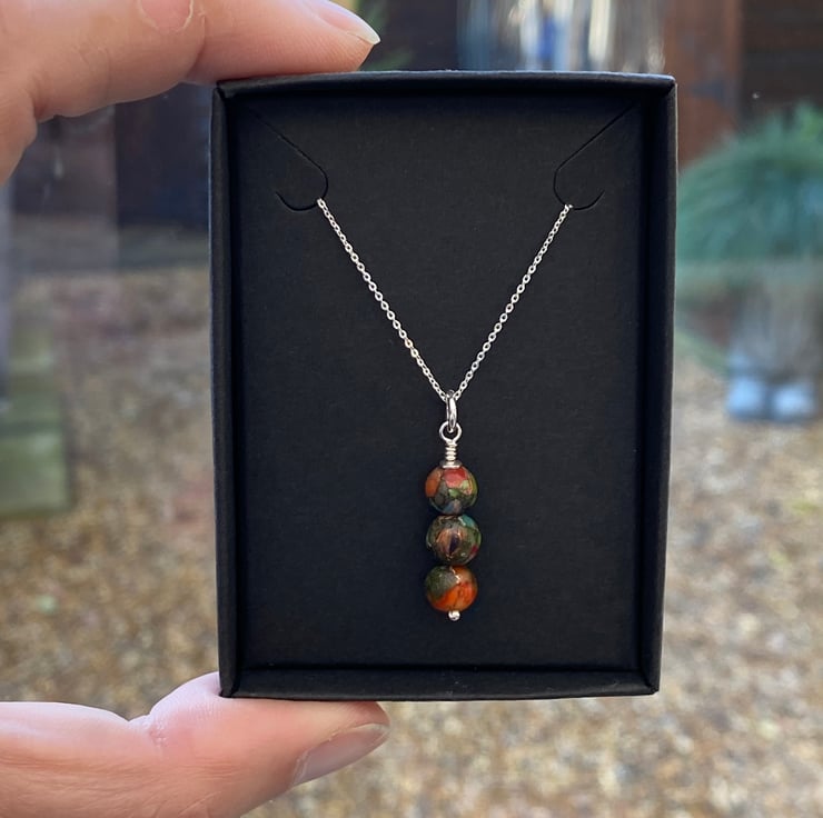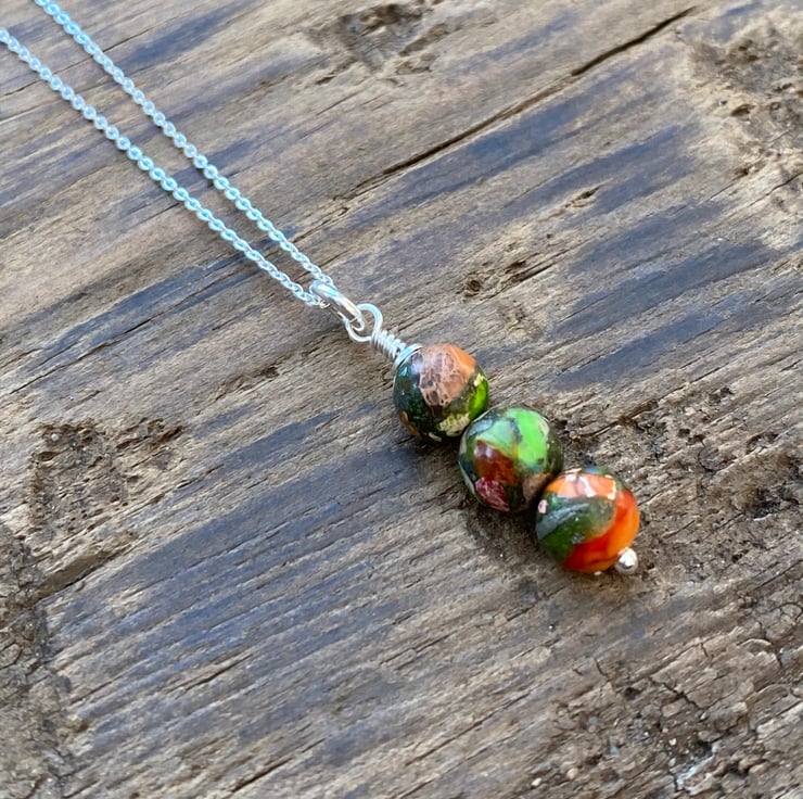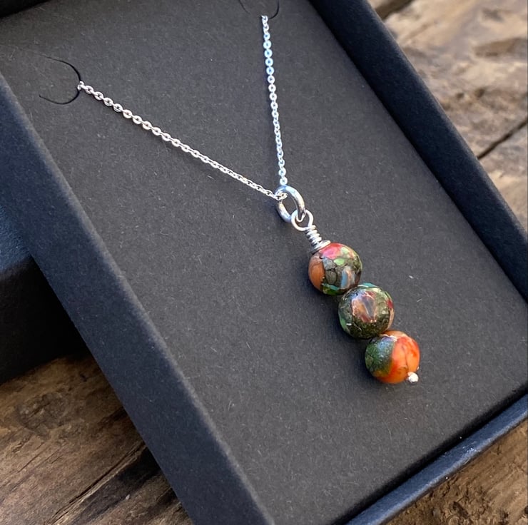 3 x 6mm beads have been hand wired onto a sterling silver headpin and hung from a sterling silver adjustable necklace.