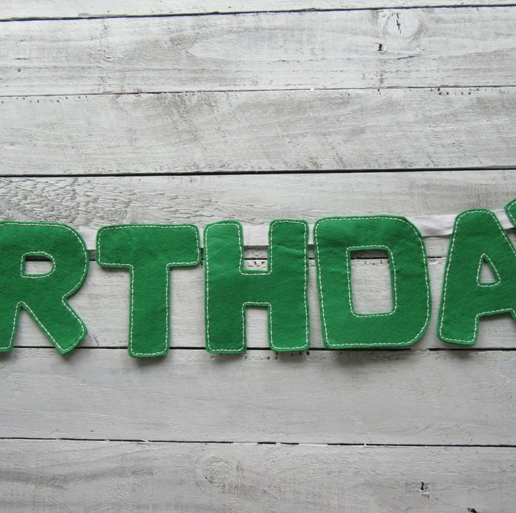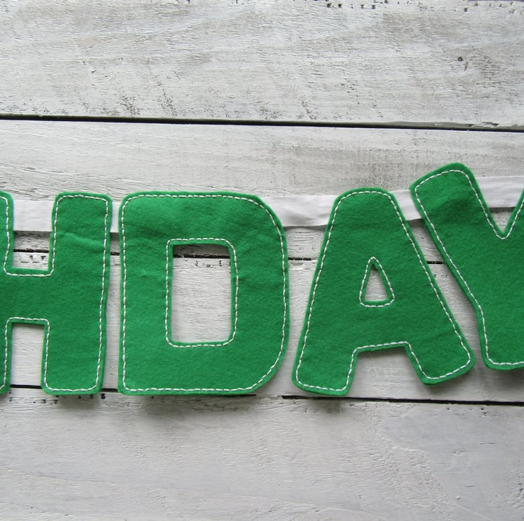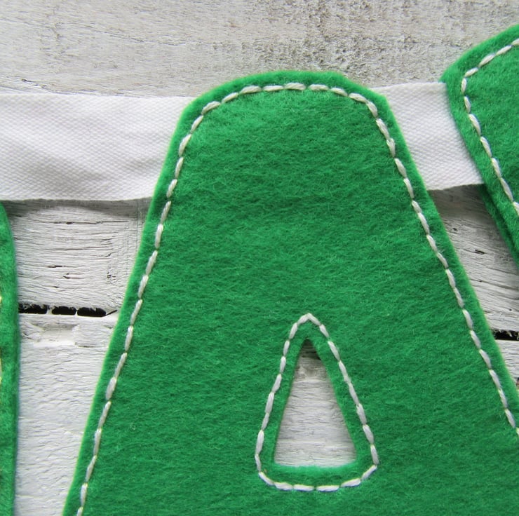 Each letter is hand cut and stitched by me from felt and good quality embroidery thread and attached onto white ribbon.