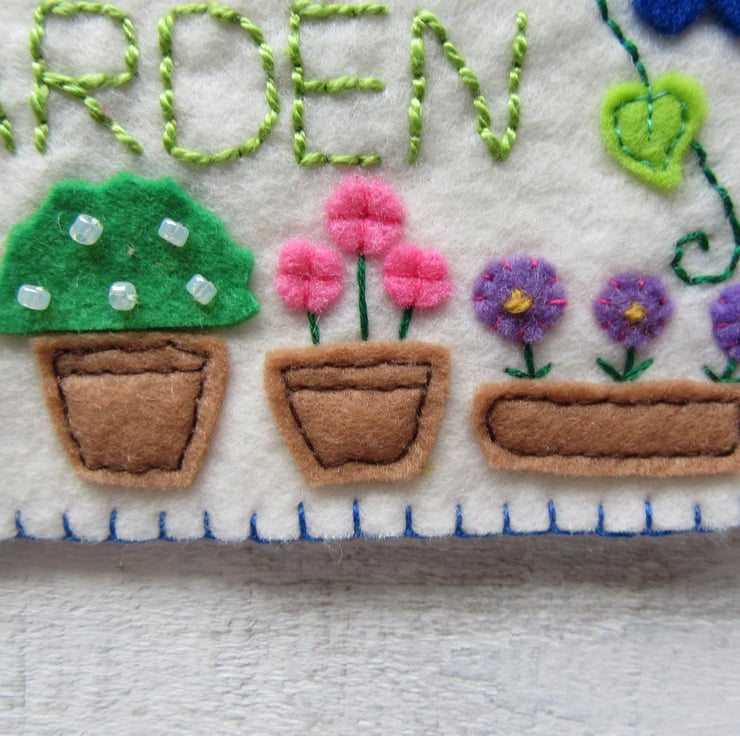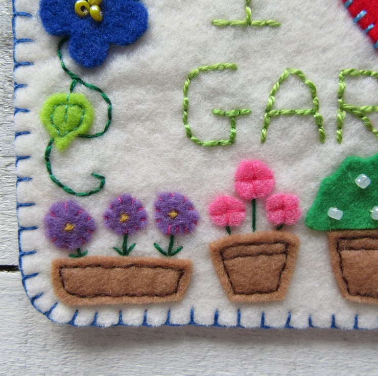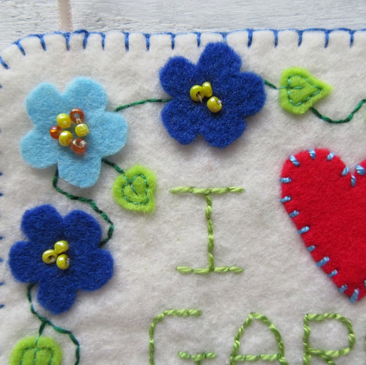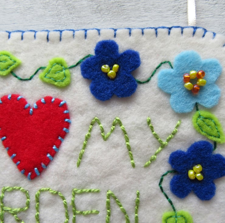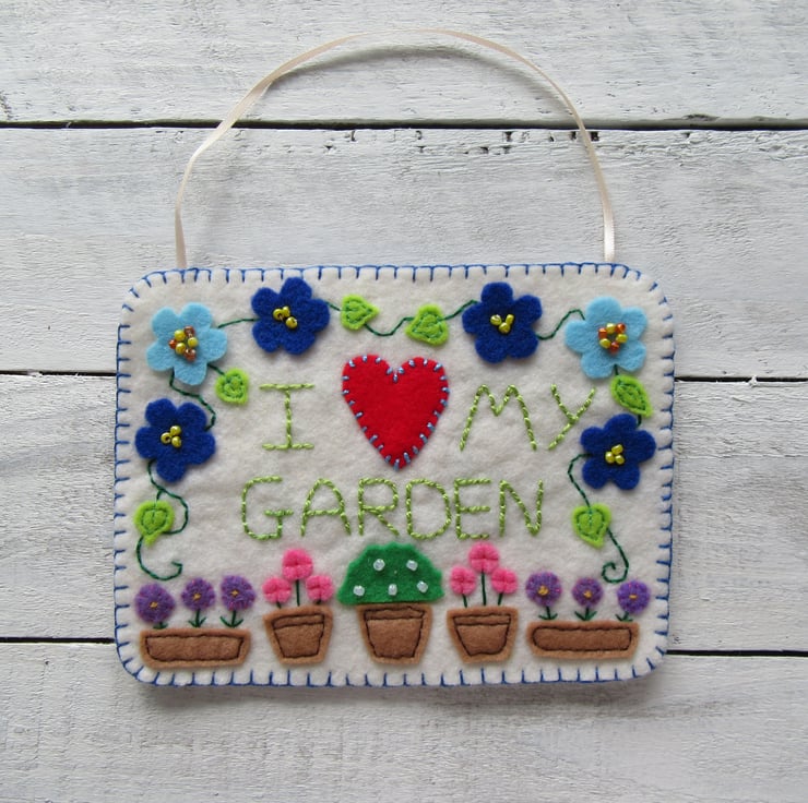 'I love my garden' felt hanging decoration, gardeners gift.