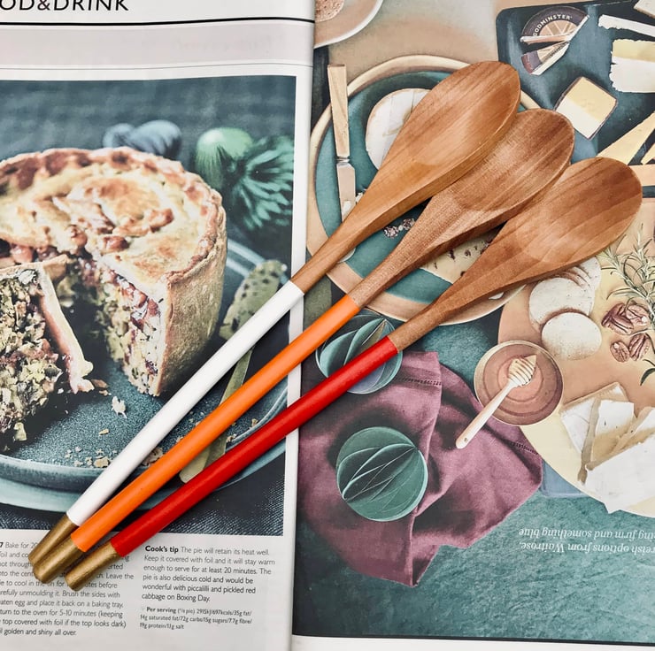 I like to take a mundane object and make it special. I want these spoons to be a pleasure to use or simply to bring joy as a decorative item in your kitchen. Stir it up with hot spicy colours of chilli red, fiery orange and cool white.