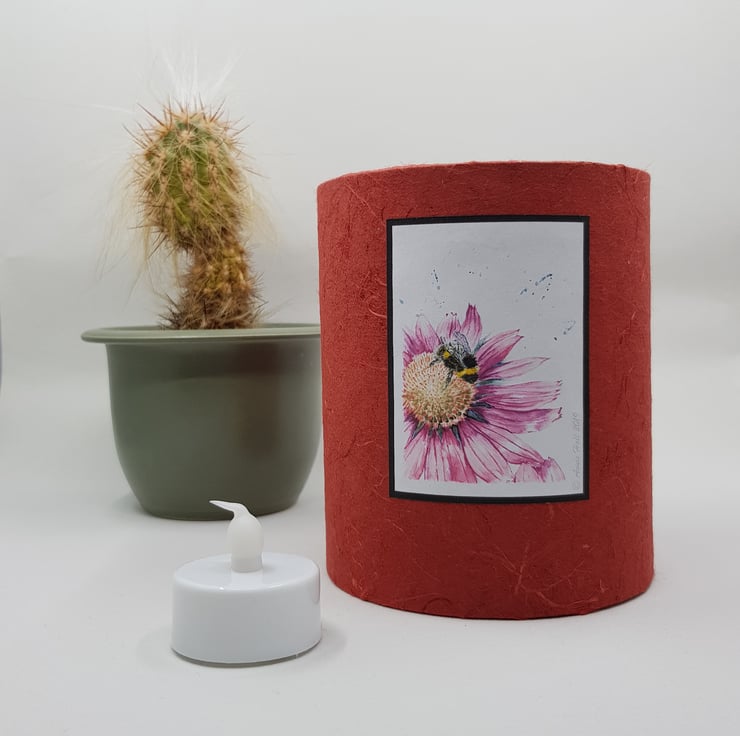 A fab picture of a bee takes pride of place on this brick-red coloured lantern, a copy of an original artwork painted by my good friend Annie