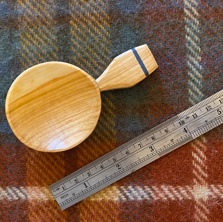 A beautiful cherry wood scoop with a touch of colour on the handle in the form of a thin blue line- could this be the ultimate scoop for that coffee loving police person! A level measure with this scoop is approx 1 Tbsp, perfect for coffee, loose tea, sugar or similar.