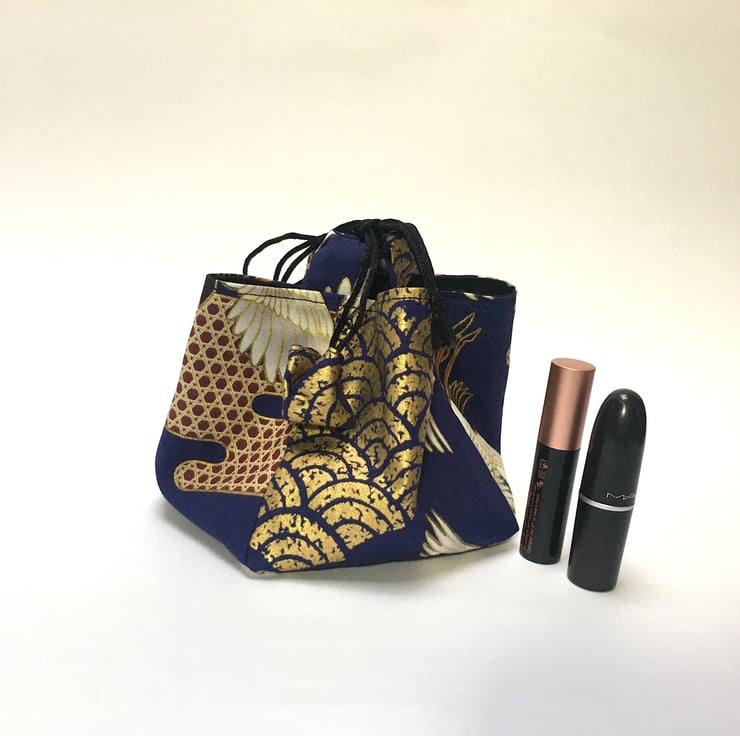The rice bag, or komebukuro, is a drawstring bag that was traditionally made of scrap fabric to carry rice or other offerings to Japanese temples or shrines.