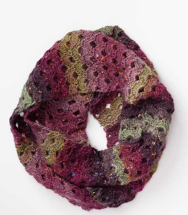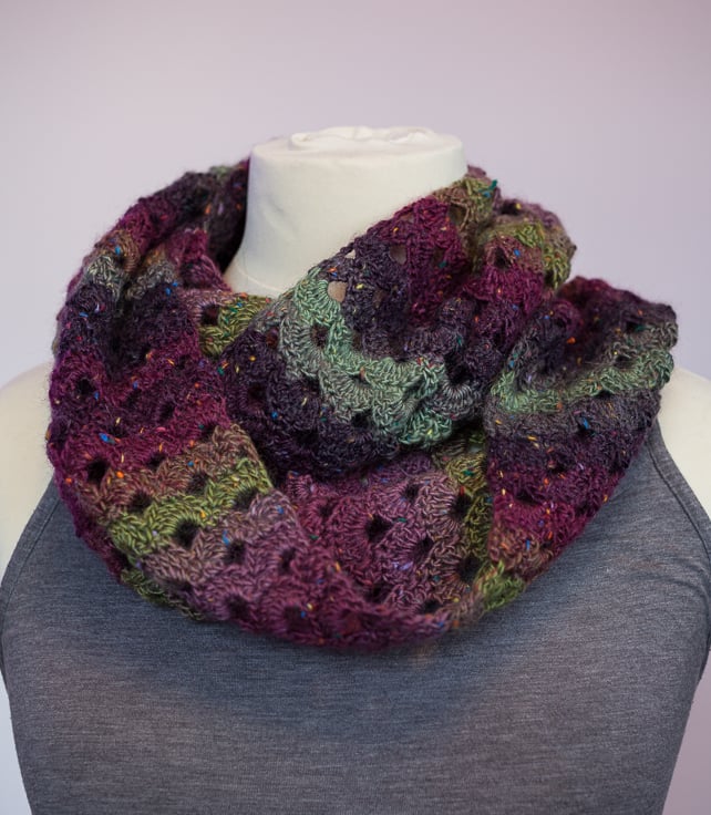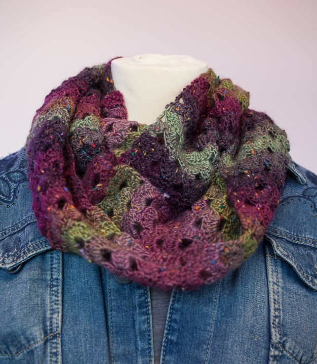 I have crocheted this cowl using King Cole Country Tweed in colour Lucky Heather.
