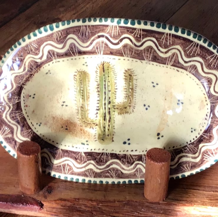 This is a little oval dish ideal for tapas or treats at the table. The design is based on images that are featured in the "Codex mendoza", which was a kind of Aztec version of the Lutrell Psalter created around 1541. It depicts everyday day life in pre conquest Aztec society.