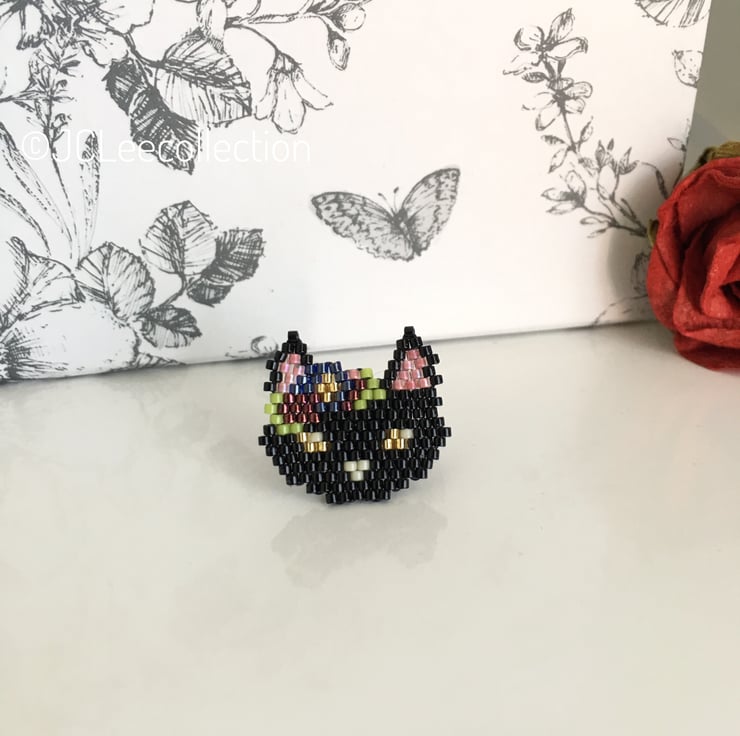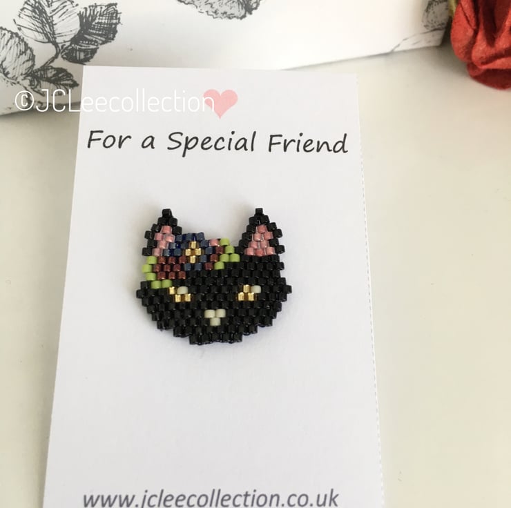 A dainty seed bead black cat brooch pin is a great alternative choice for a special friend birthday gift idea.