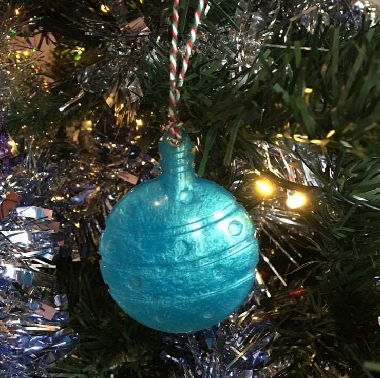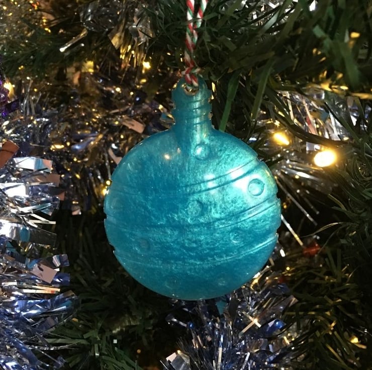 I created this large bauble tree decoration by mixing the most stunning turquoise blue Eco friendly and ethically sourced mica powders and metallic pigment with resin, each one is handmade and unique.