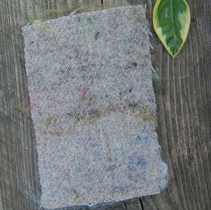 Needle felted with unspun wool onto a piece of wool reclaimed blanket.