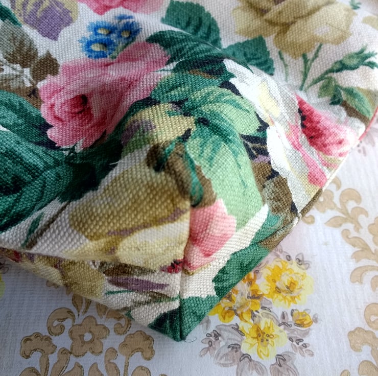 The bottom of the bag has been sewn with a box bottom so the bag will stand and this creates a nice deep gusset.