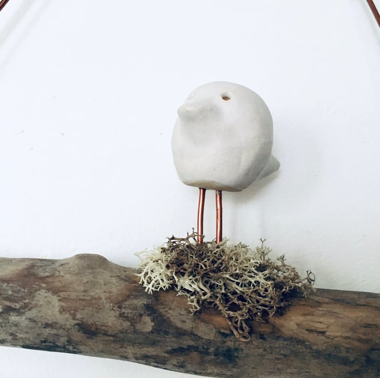 I have also attached a little bit of moss so he looks like he is perched in his nest. This is a one off piece of contemporary art.