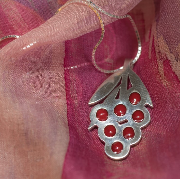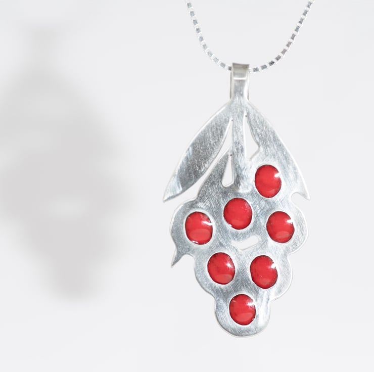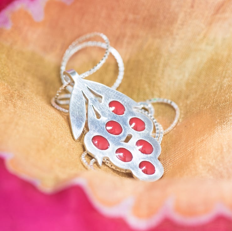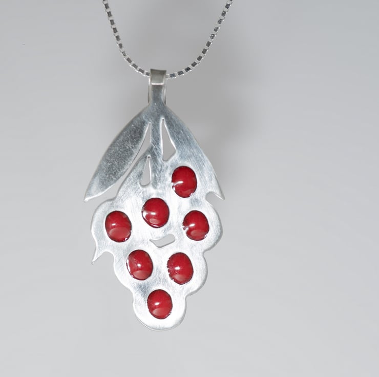 I created a solid silver structure and inset beady red vitreous enamel accents to complete a unique piece that you will enjoy wearing.