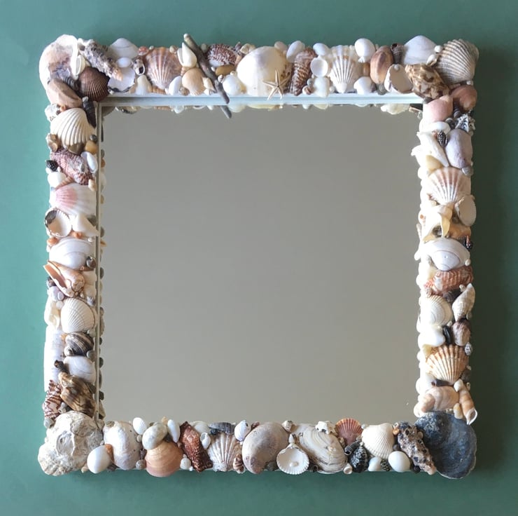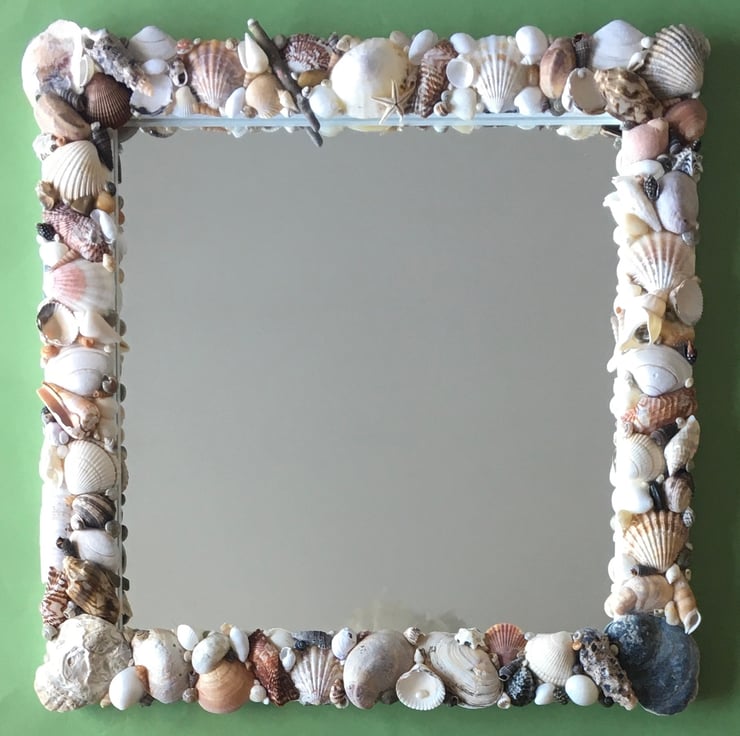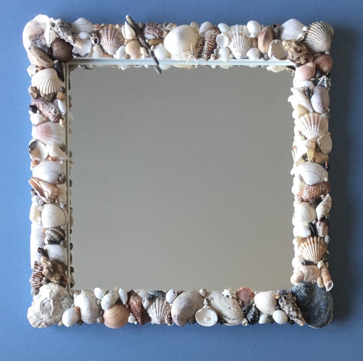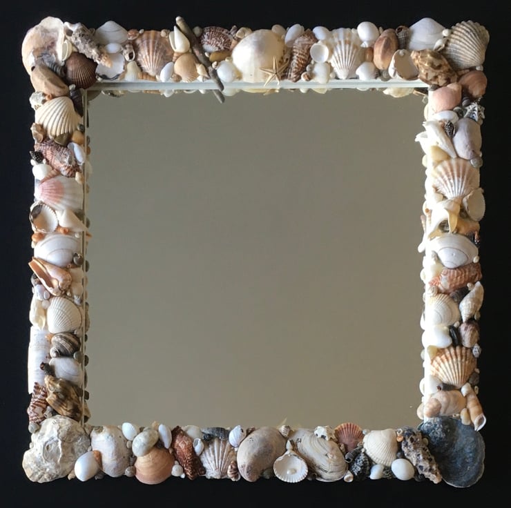 Unique and individually made handcrafted natural seashell mirror